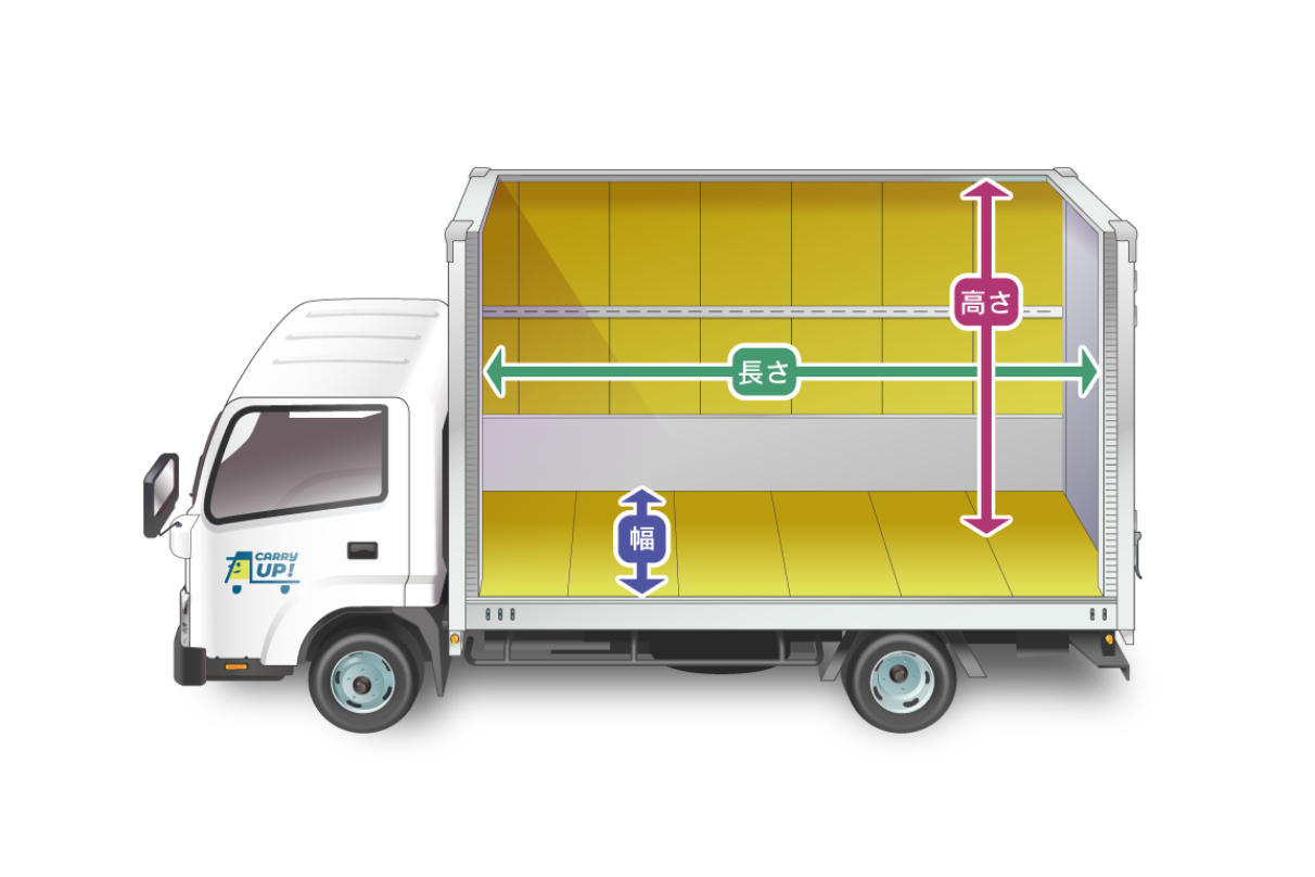 2トンの中で荷台の「幅」が大きなサイズです。大きな貨物や多量の貨物を積載することが可能です。