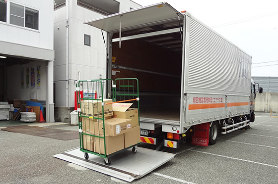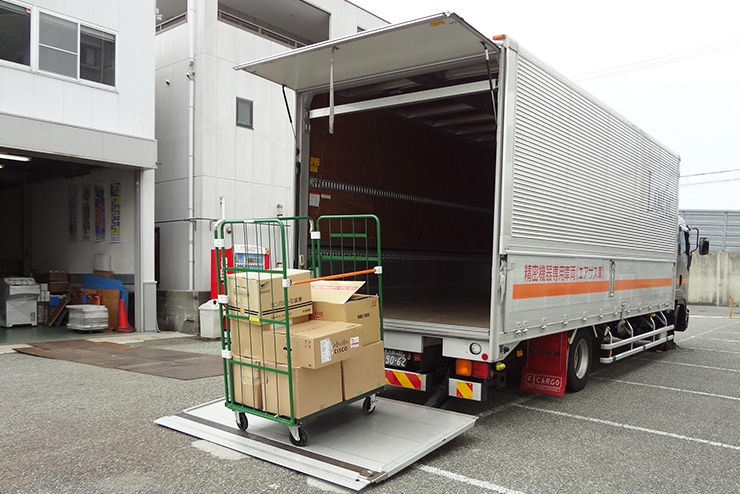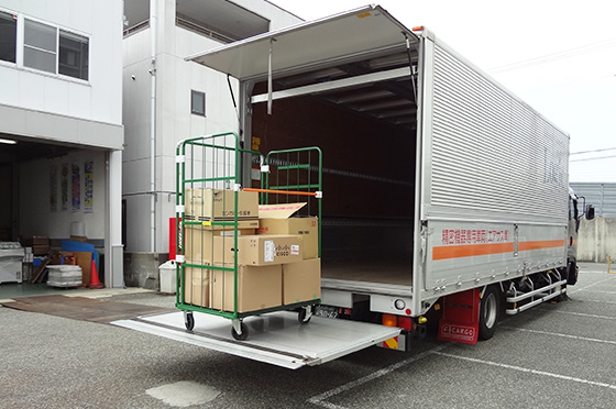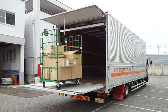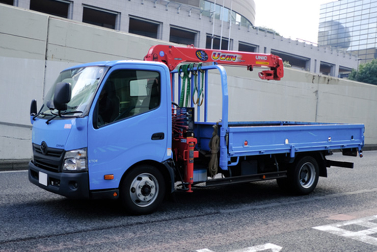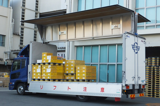 荷台に屋根がないため、クレーンなどを利用し、貨物の積み降ろしが可能です。その他、高さ制限のある搬入路や道路を通行する際に使用します。